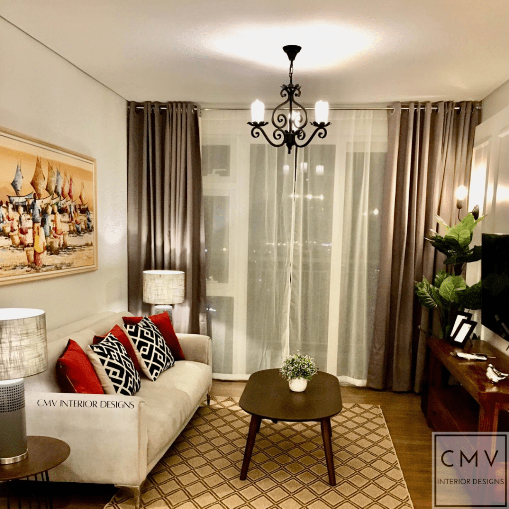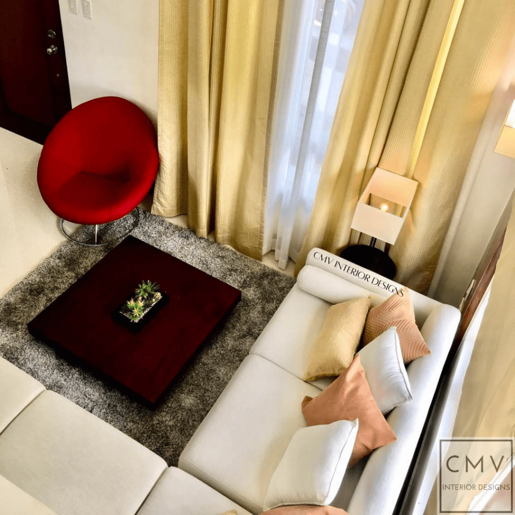 Line and shape define this space. With contrasting shape and size of furniture blend with the softness of neutral colors and insert a dash of red and pastel yellow-orange tone thru accessories give this space a harmonious feel and stylish vibe. Space is all about Chic and Sleek!!!