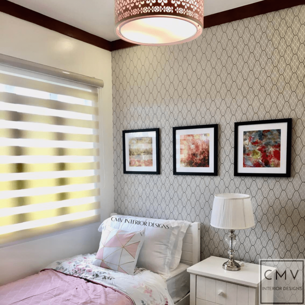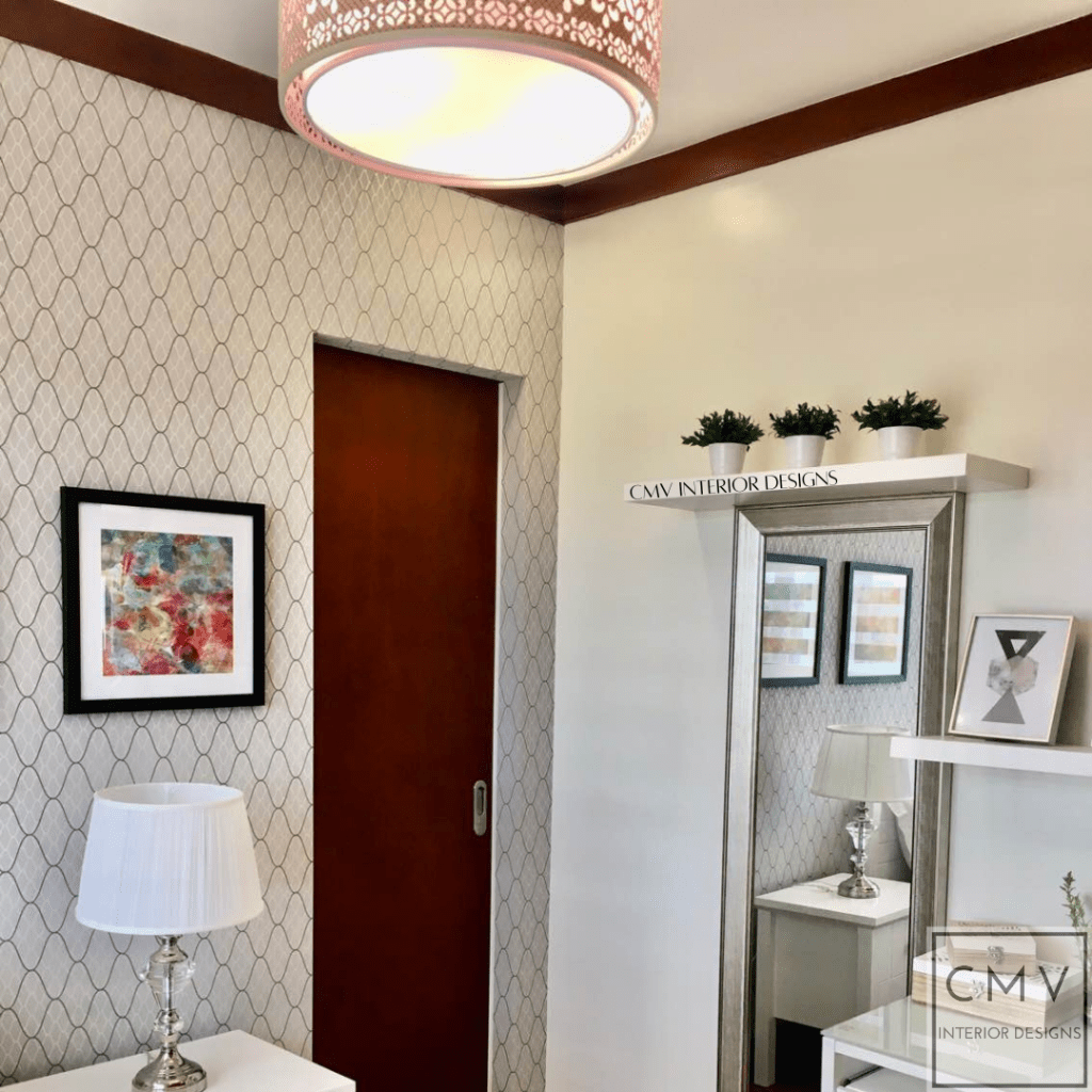 White doesn’t need to be plain. The room speaks for it, white walls and ceiling serve as a canvass, dash up with patterns by use of wallcovering. Textures by playing with paint in a metallic tone. Blending with the richness of wood molding and doors. Accessorizing with curves and shapes and a splash of colors thru wall art completes the look of this white room but with distinct flare.