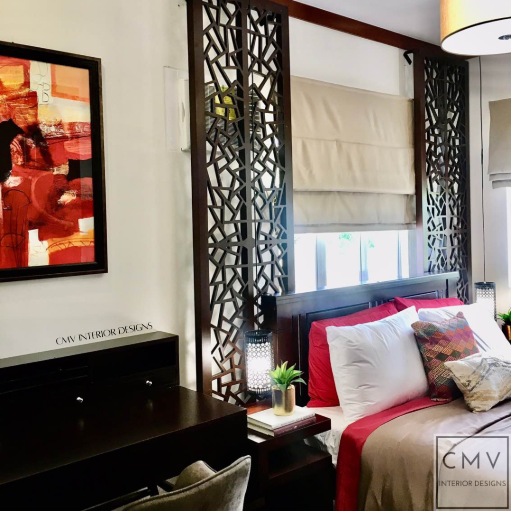 Nostalgia and tradition what defines this bedroom space. Dark wood furniture brings out the traditional and nostalgic ambiance but will never go wrong to intensify the space by dashing some colors of fierce thru red tone and orange brings out the energy to this room. Layering some patterns to the wall gives striking features that make the room bold and symmetrical.