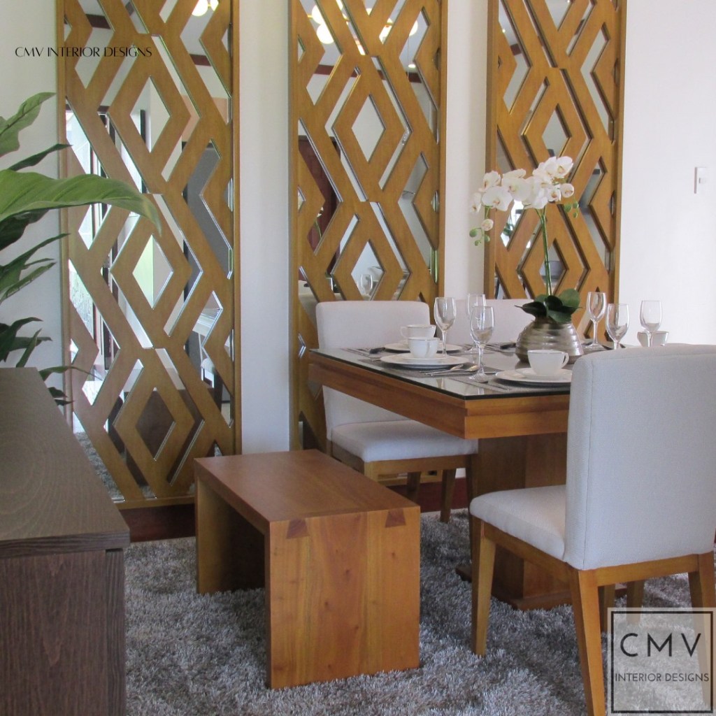 Rich and warm tones are used to create an alluring and enveloping glow. A well-designed dining space is pleasingly inviting. The design should be both striking or appealing for hosting gatherings or even intimate conversations between the family. The elegant accent wall partition with intricate lines made the space stand out. This partition does not only separate intimate places but is also provides a good focal point. A one-of-a-kind floral centerpiece also daunts this dining space.