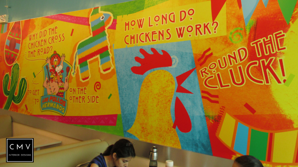 “Bright and playful. Rich colors and woven textures are the keys when it comes to decorating a Mexican style. The Blue and orange combination works well in the stool and tables which adds warmth and cool details to every decoration. This inflicts a relaxing and easy-on-the-eye style. As well as with the moral painting inside the restaurant carry on with blue and orange scheme. The Spanish European architecture and native tribal culture blending led to some of the most beautiful and colorful art and décor that can be found anywhere in the world.”