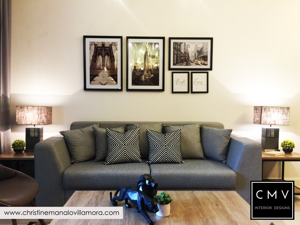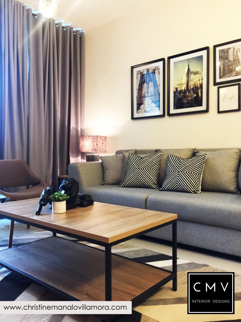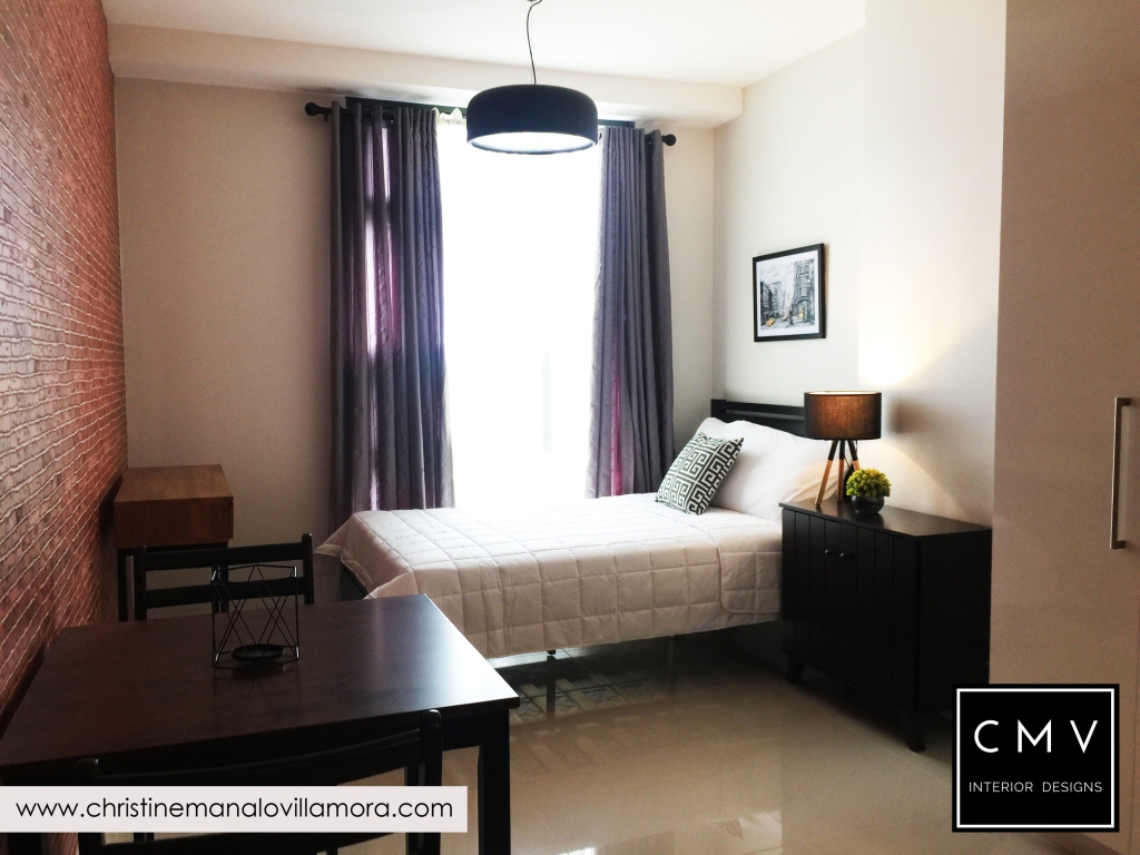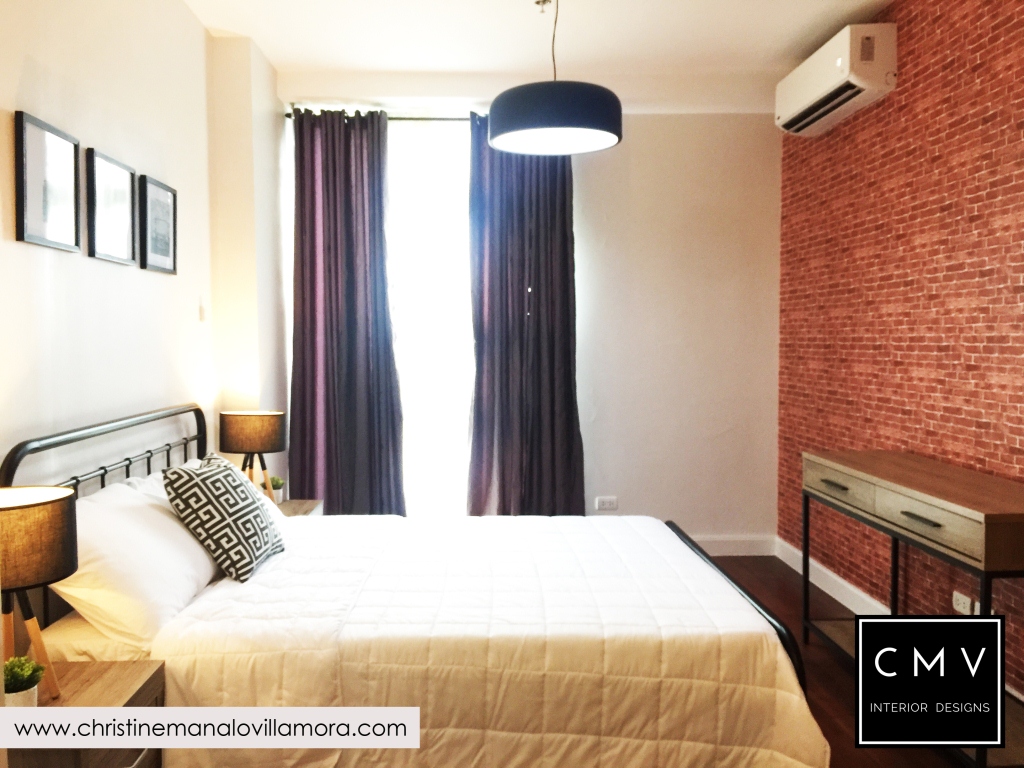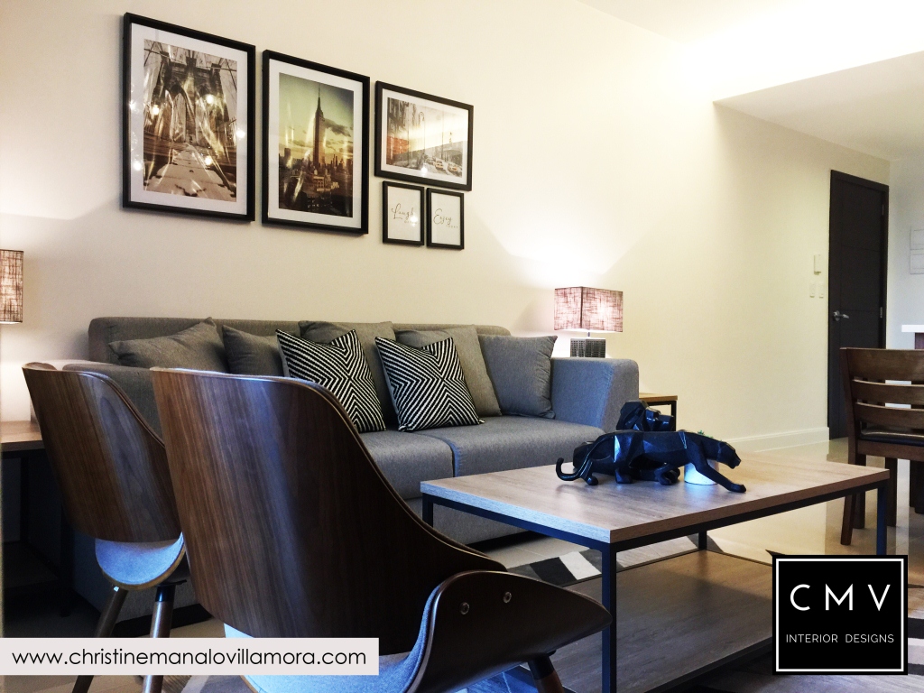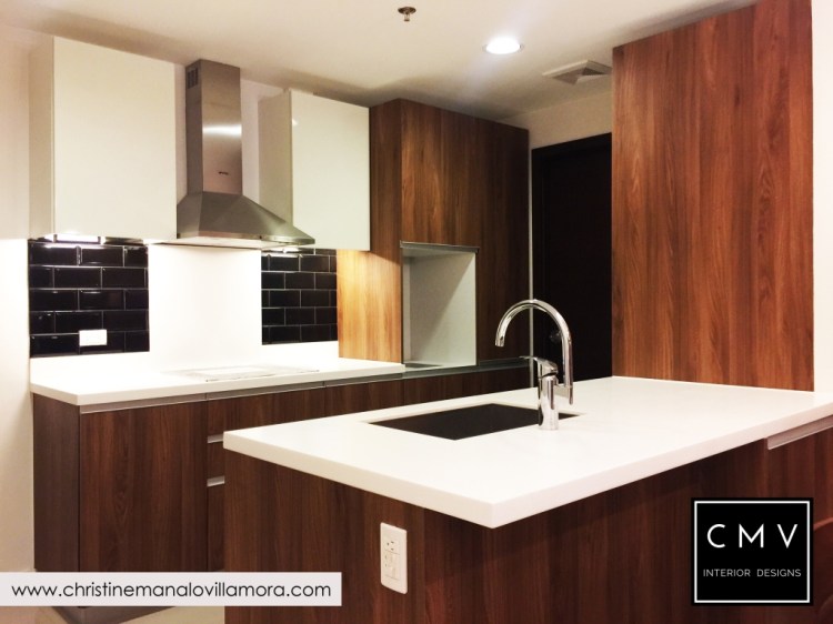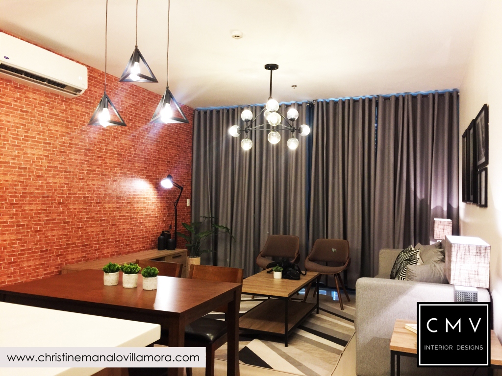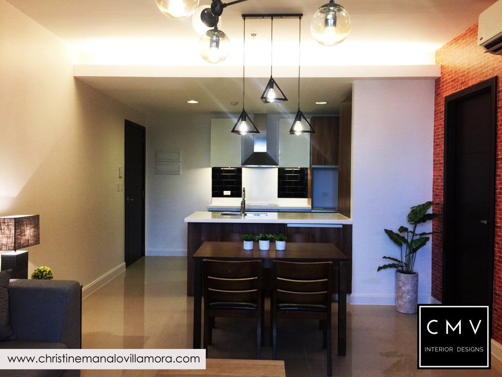 “Developed by Ayalaland, this unit was turned over to our client with a premium kitchen cabinet already. I tried to match the color of the rich wood laminate and came up with a New York Industrial interior design.”