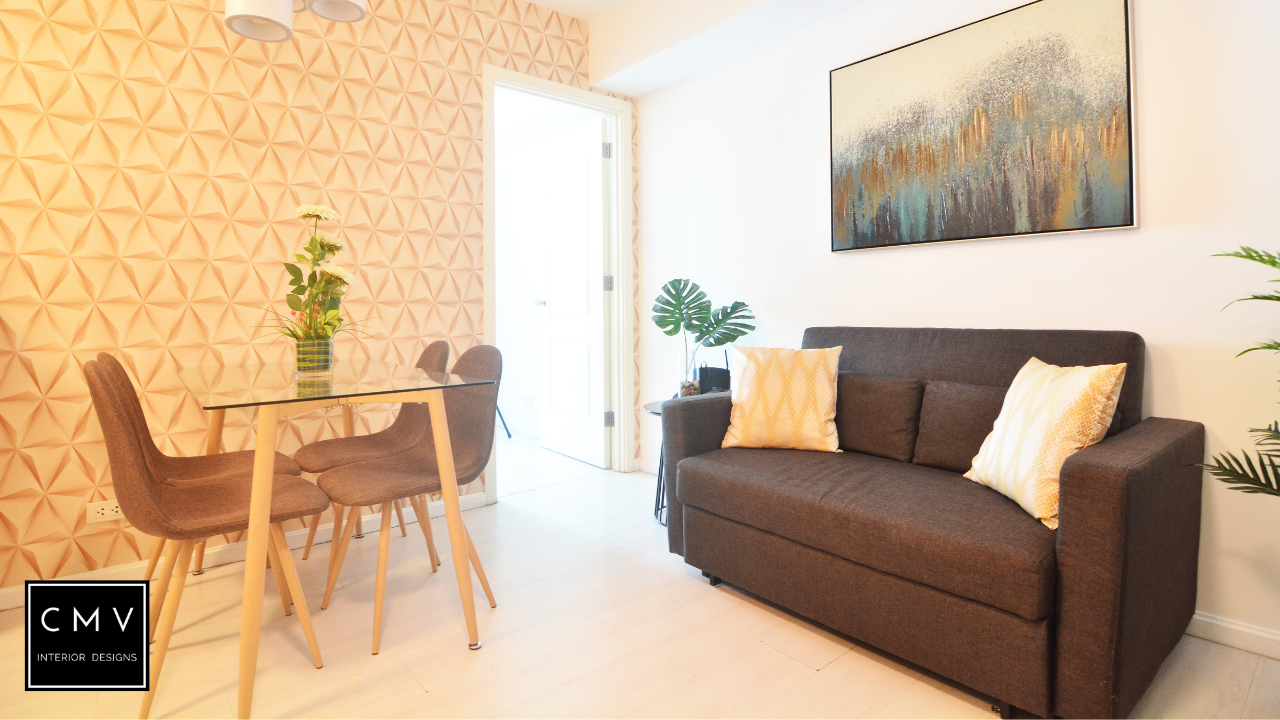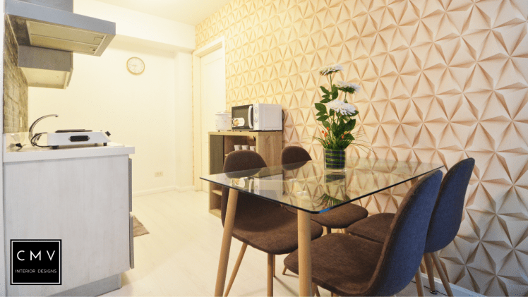“Aside from designing for personal use, our interior design services help our clients who run their own condo-rental business in platforms like Airbnb and others. For this project, we focused our design solution on providing the homiest and most welcoming space for our client’s guests. We placed our decorative wallpaper on the first wall that you will see as you enter the condo unit. This way, it will instantly welcome the guest and create a mood that makes you want to indulge in your “Staycation.”