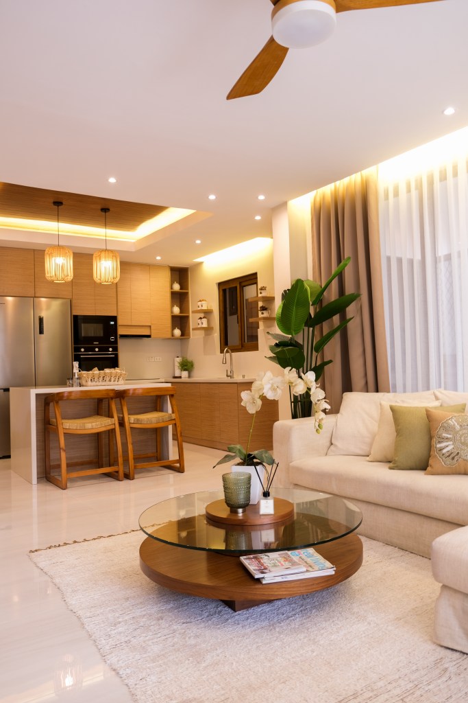 “A balance between vibrant colors, natural elements, and a relaxed atmosphere when designing a tropical interior. We created a space that transports you to a tropical paradise, evoking a sense of tranquility and bliss.“
