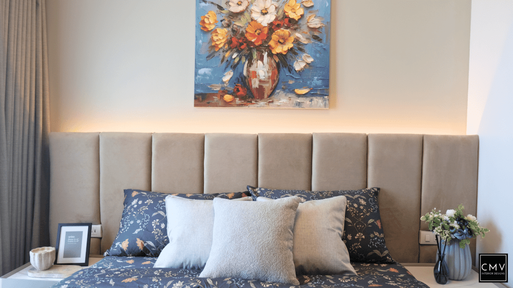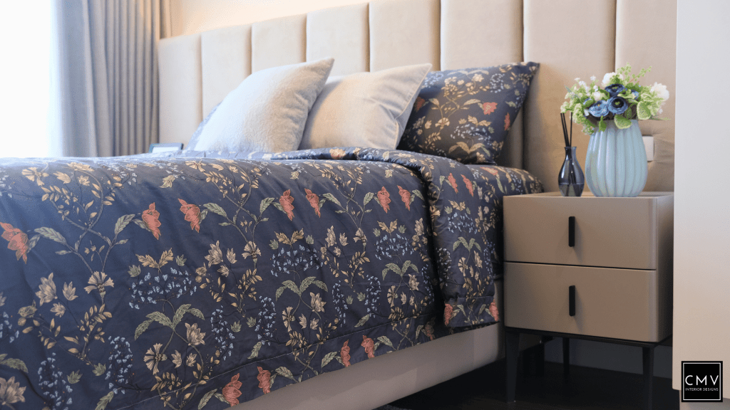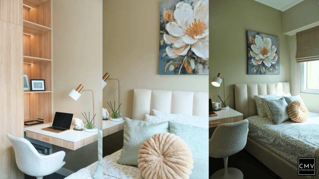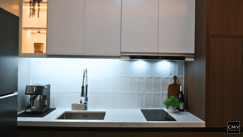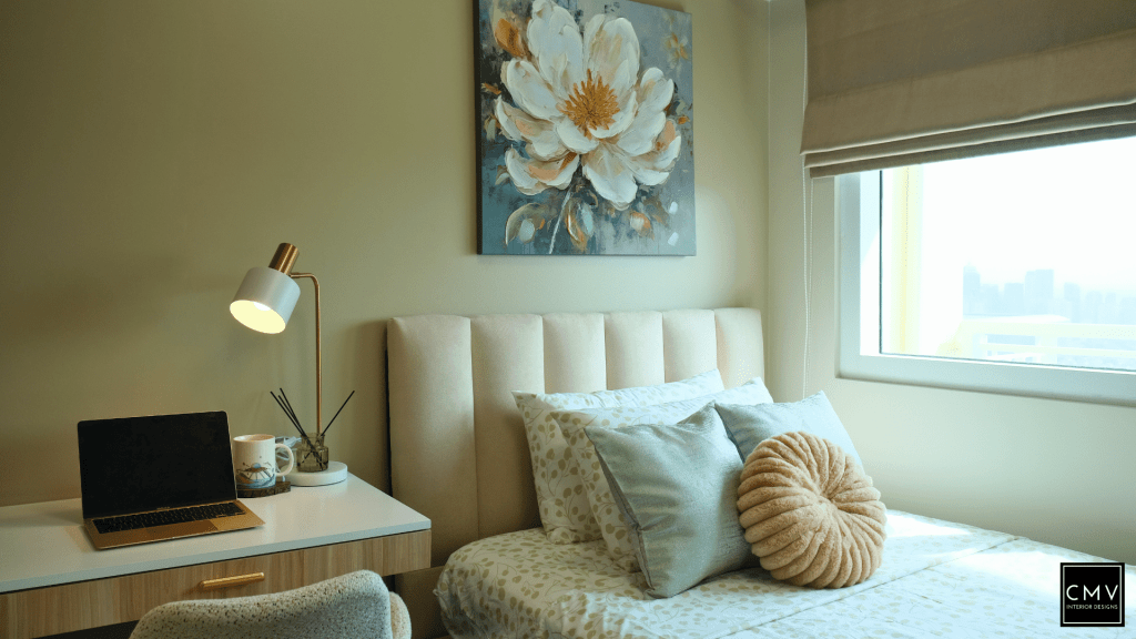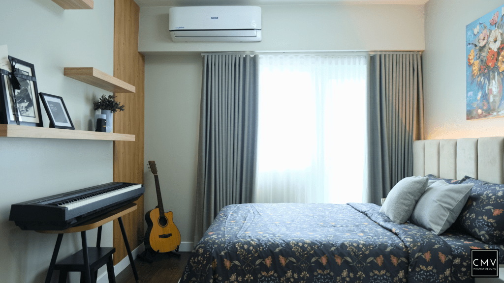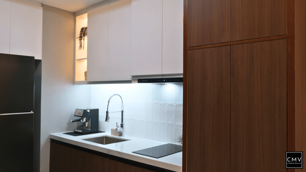 This newly completed Maven condo unit in Pasig City features a cozy yet contemporary interior — elevated by natural textures, layered lighting, and a striking blue sofa as the focal point.”