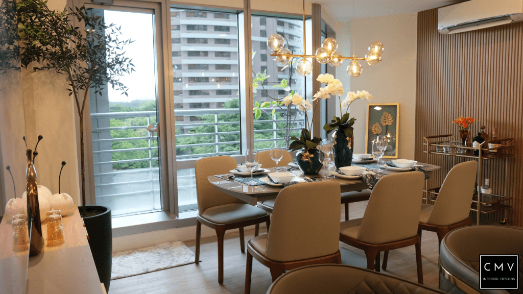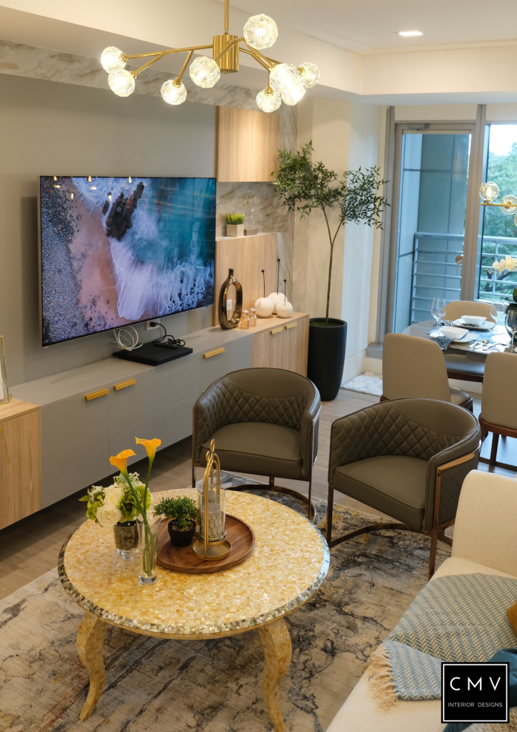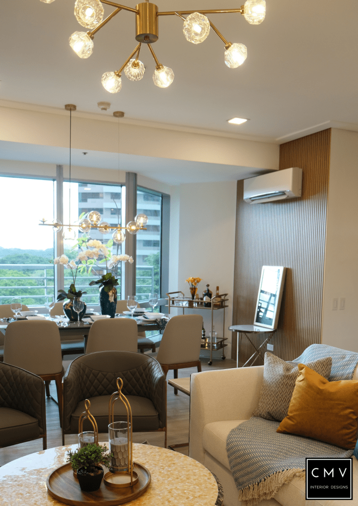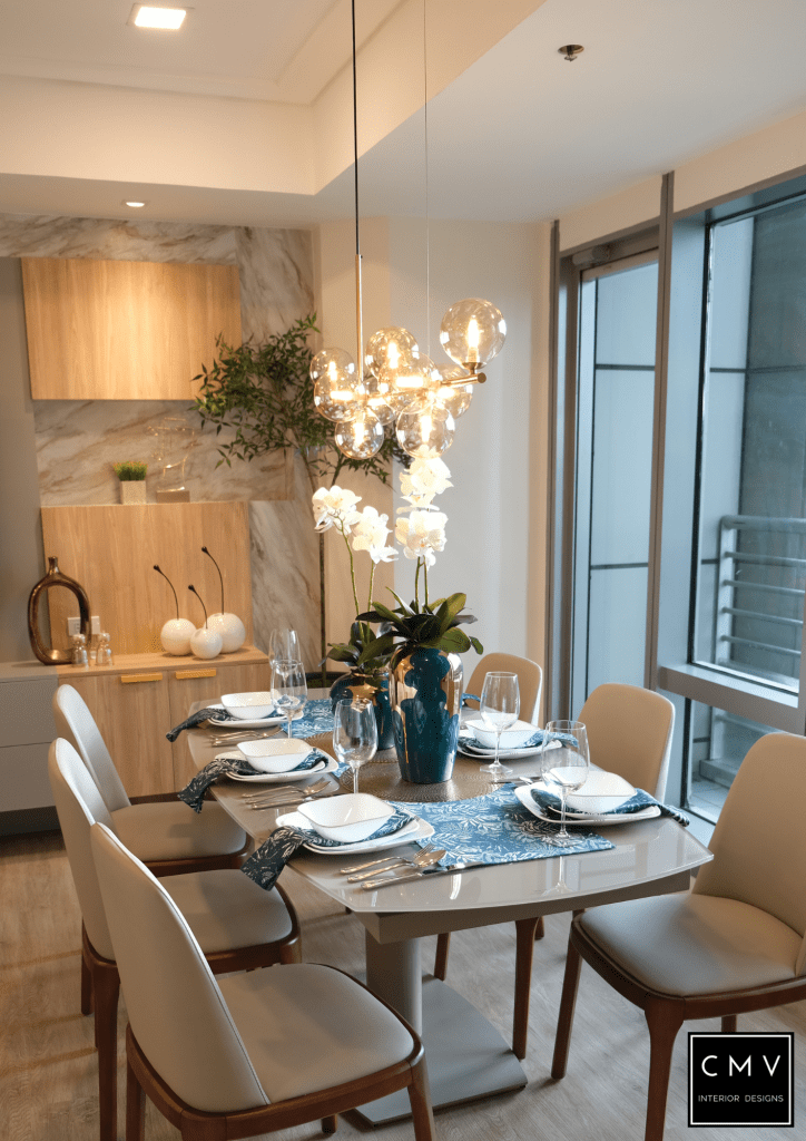 “For this project our starting point is the existing gold capiz table of our client. From there we draw our color scheme and splash the details through our accessories, accent pieces and even light fixtures. It was interesting to mix and match different textures but still achieve one elegant look.”