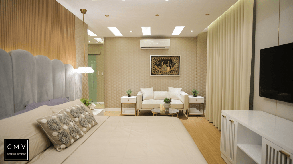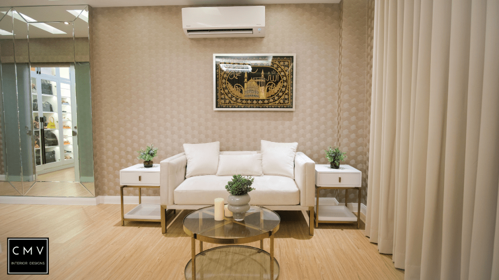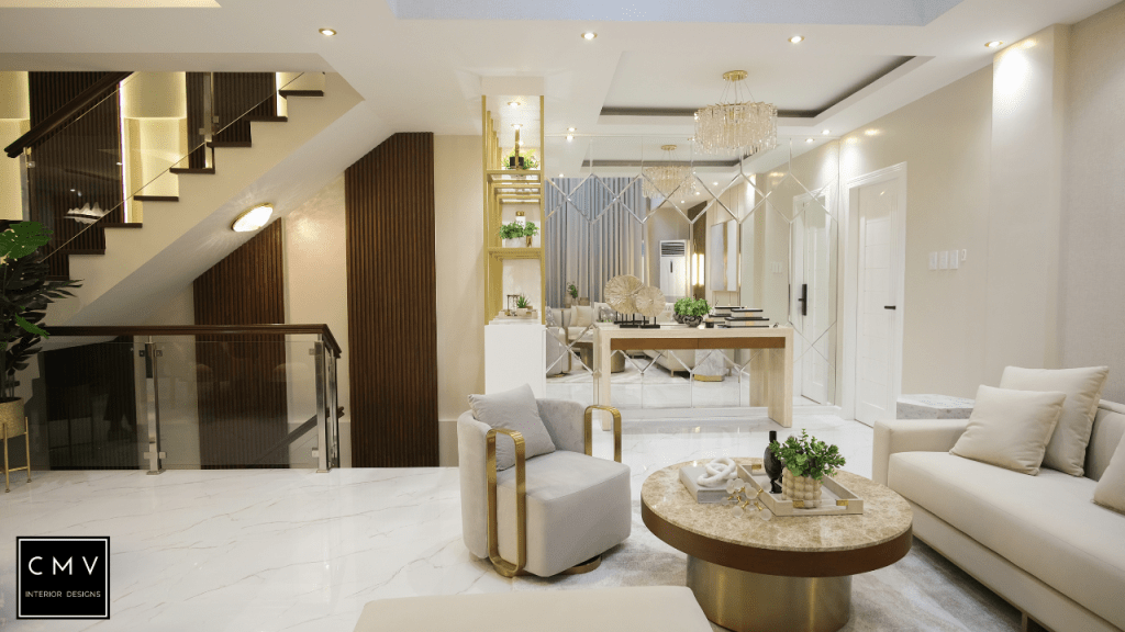 “Achieving a cozy and homey ambiance is about finding a balance between luxurious gold and white elements and warm, inviting details.”