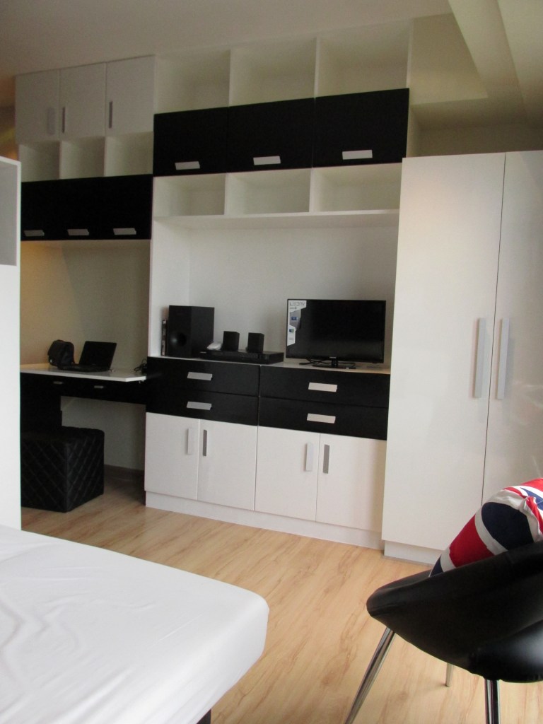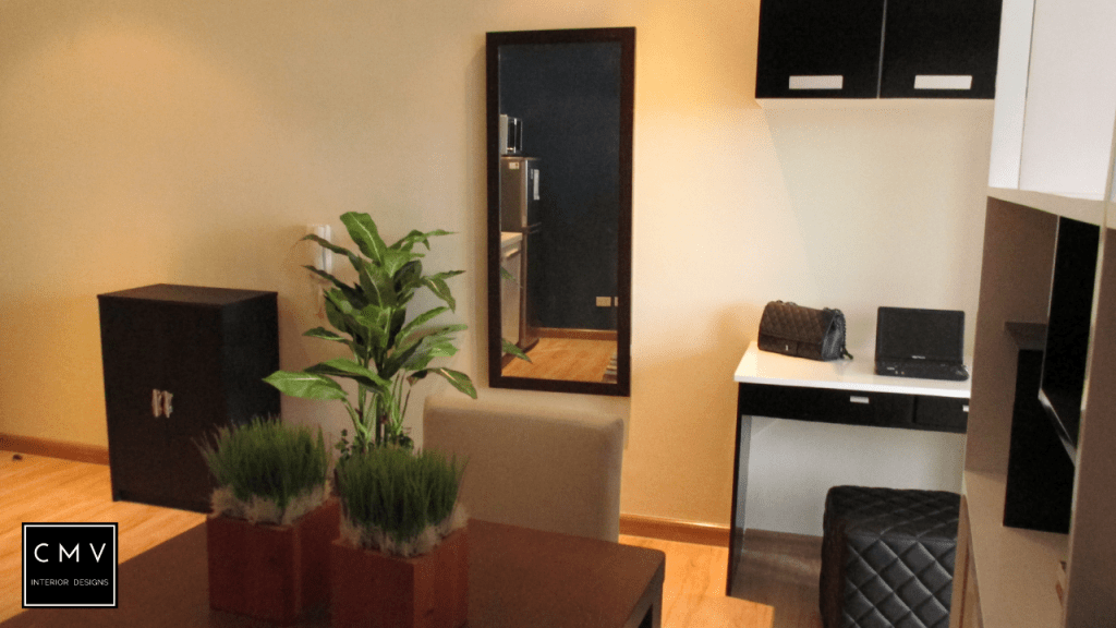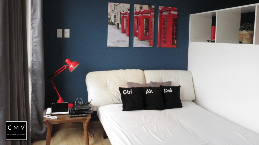 “Regal and independent. Knightsbridge symbolizes crown and royalty. From the living area up to the bedroom, inspired by London where the royal family lives. The use of dark colors such as navy blue, red, and black along with white combination represents formality and superiority. The accent accessories pillow, wall frame, and lamps add the vibes that you’re in London. The logo encapsulates the chief end of the Knightsbridge development and that is to make homeowners feel happy and completely satisfied with their investment.”