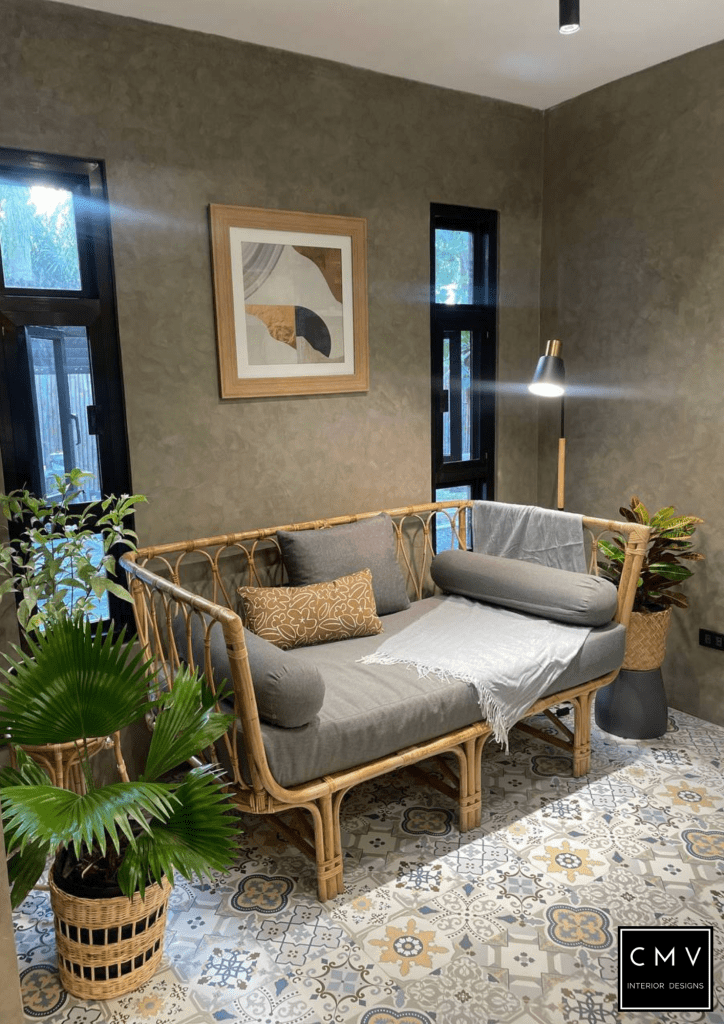 “For this project, we helped our client achieve their relaxing farm and resthouse. Industrial and Natural Inspired are the keywords we kept in mind while designing for the home.”
